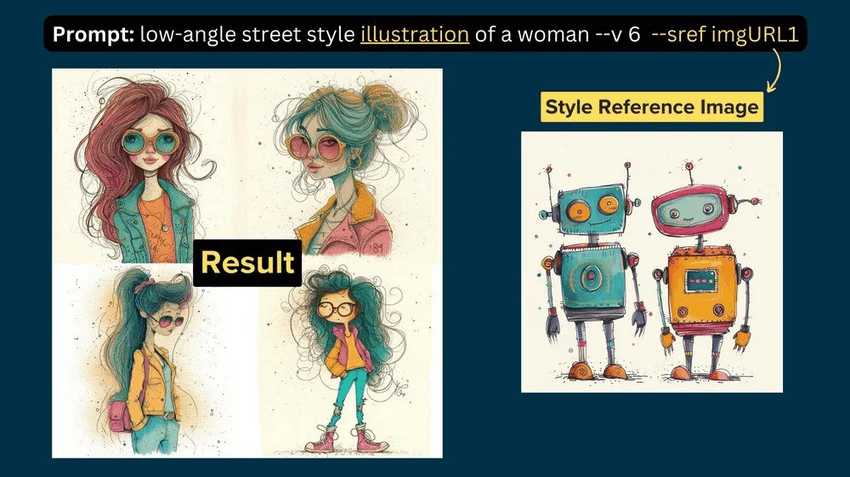 --sref (style reference): Tells MJ "make it look like this", lighting, color grading, brushwork, mood.