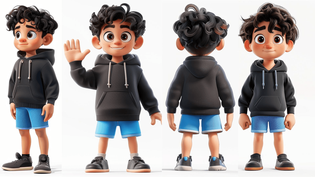 If 3 out of 4 feel like the same person, we keep going. If every new angle looks like a new actor, we go back and strengthen the character block (especially hair, jaw, and nose) and regenerate the hero shot before building a full set.