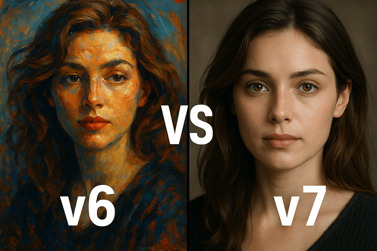 ** V7 handles facial details with more coherence and produces richer textures, especially in bodies, hands, and skin. It's now the default model as of June 2025.**