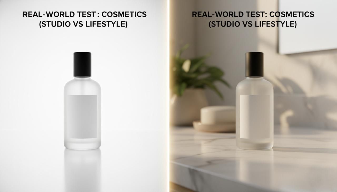 Test 1: Cosmetics Bottle (Studio + Lifestyle Comparison)